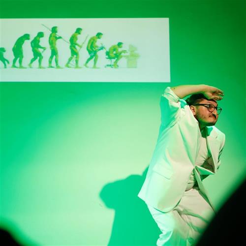 intermediálna performance pre študentstvo stredných škôl o nástrahách a zákonitostiach digitálneho sveta