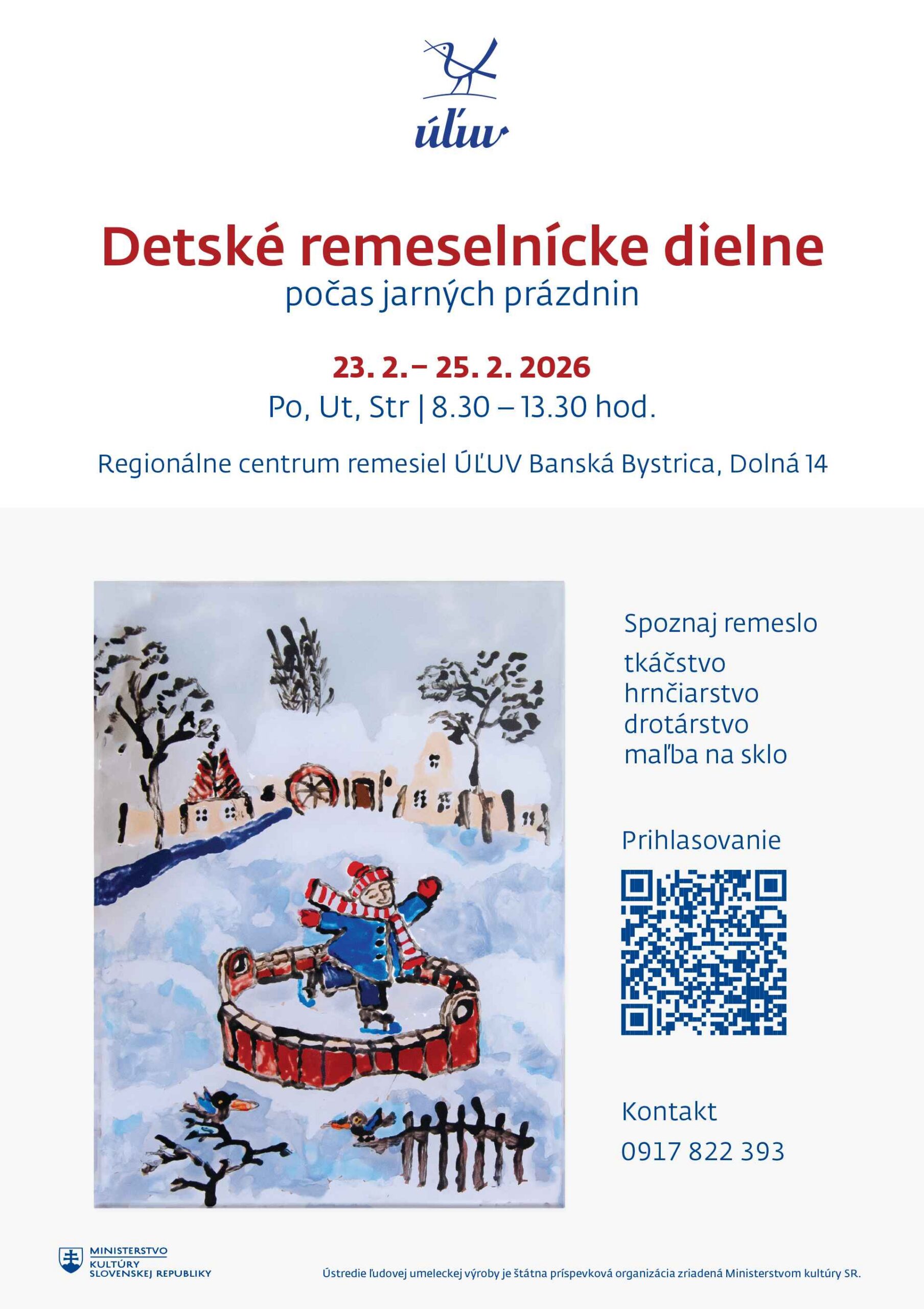 Viac informácií nájdete na stránke: https://uluv.sk/kurzy/detska-remeselnicka-dielna-jarne-prazdniny-bb/